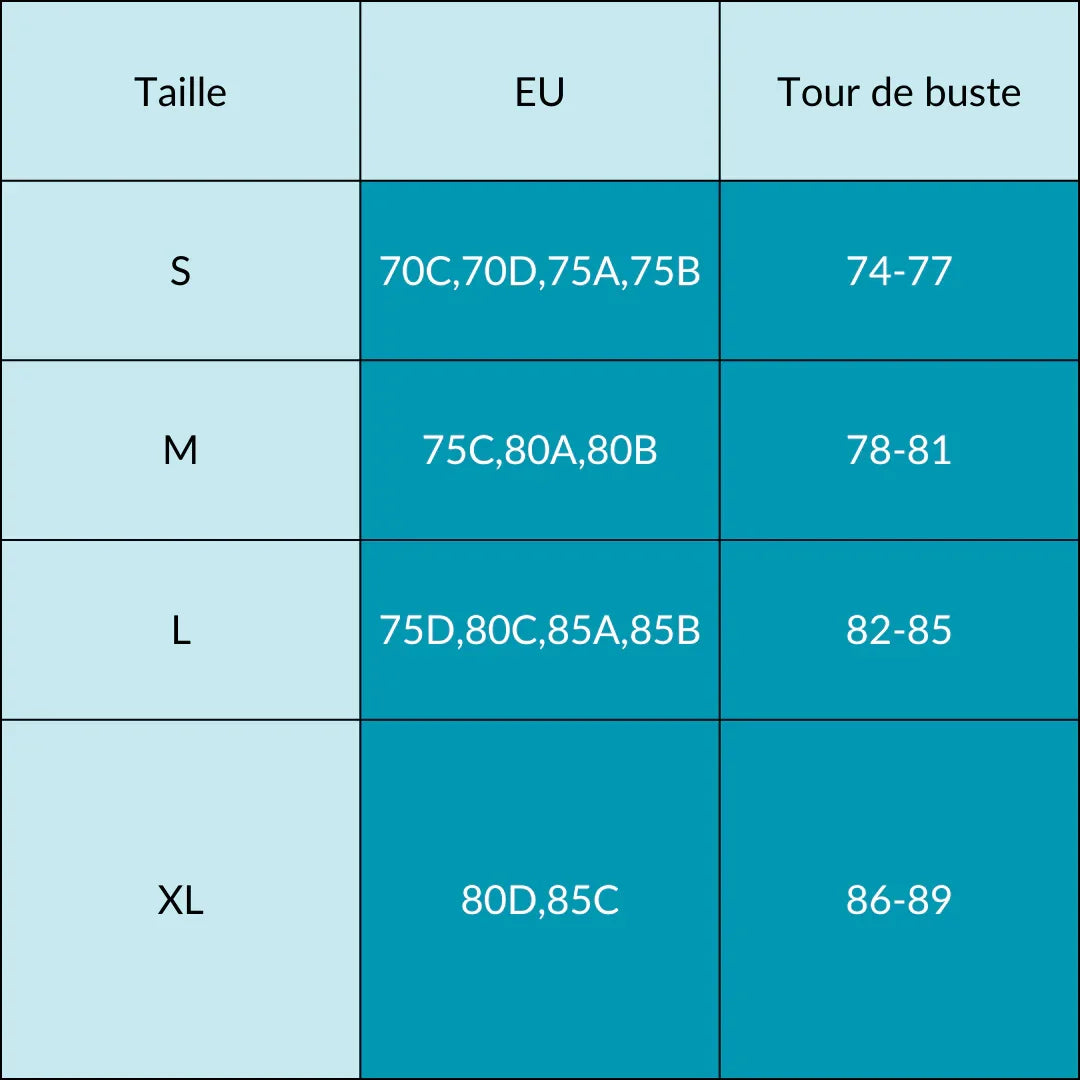 Tailles Disponibles : Du 80A au 90C, pour s’adapter à toutes les silhouettes